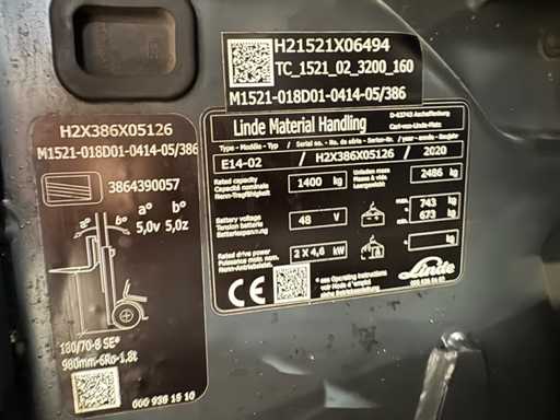 2020 Service + UVV 07/2026 Linde E14-02 EVO 1.400Kg 3.+4. Ventil Gabelversteller Freihub 11.848 Stunden