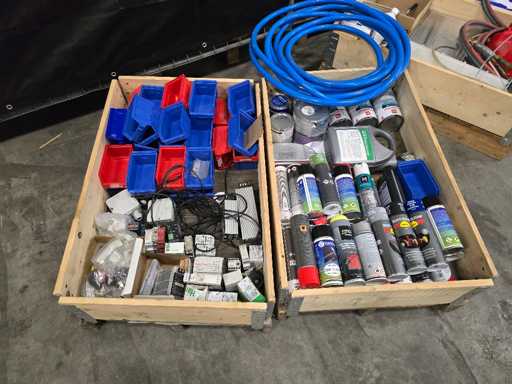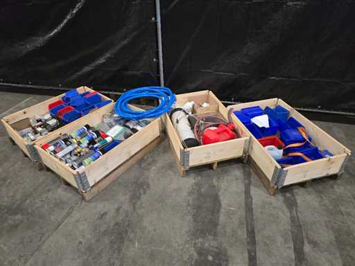 4 Paletten mit verschiedenen Maschinenzubehör und Mehlprodukten