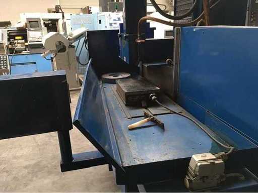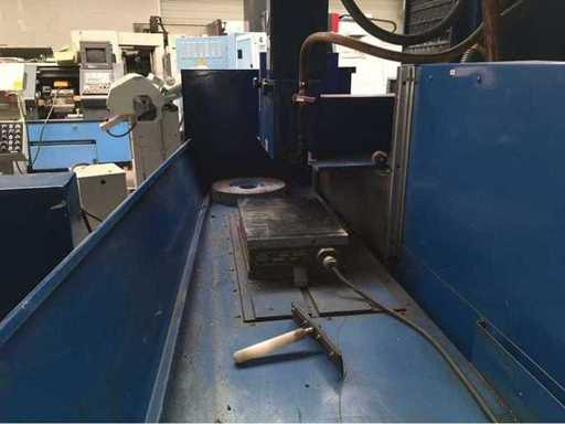 Industrial surface grinding machine for machining flat surfaces. Equipped with NC control, magnetic table and sprinkler system with tray and filtration.