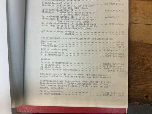 - Tailstock quill: Ø 60 mm, stroke 150 mm, MK 4
