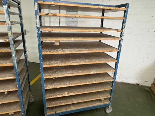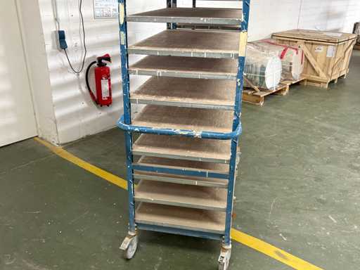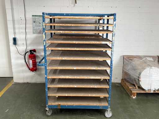 Stable production / drying trolley with 11 shelves – on casters – used
