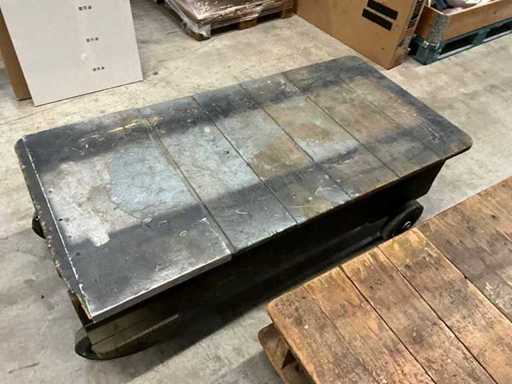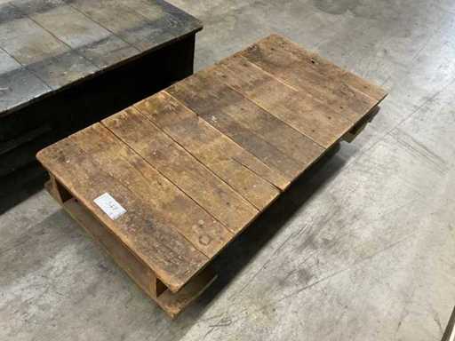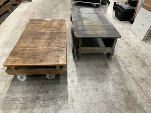 2 trolleys made of solid wood, each with two swivel castors - ideal for heavy parts from the carpentry workshop Material: Solid wood lacquered – condition older, but 100% ready for use