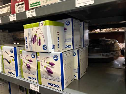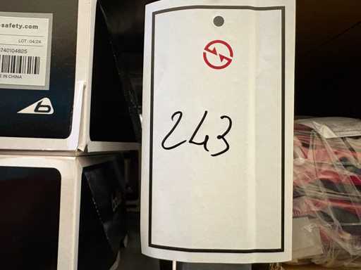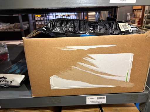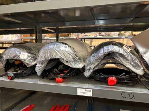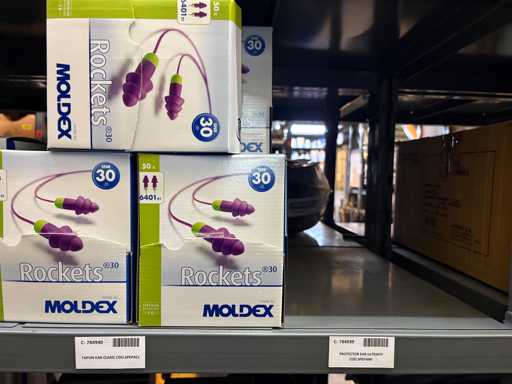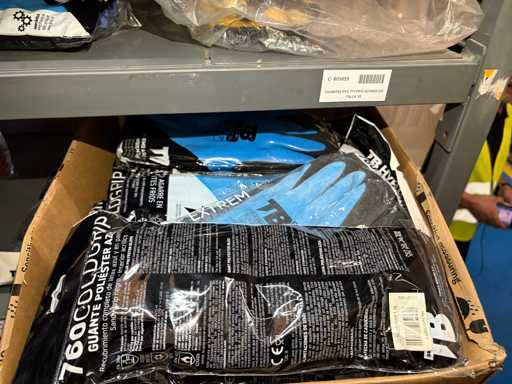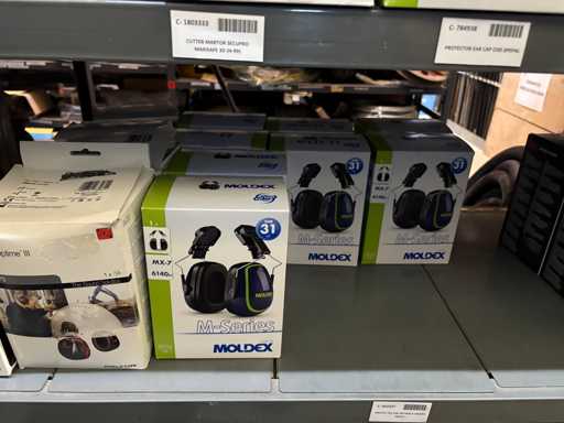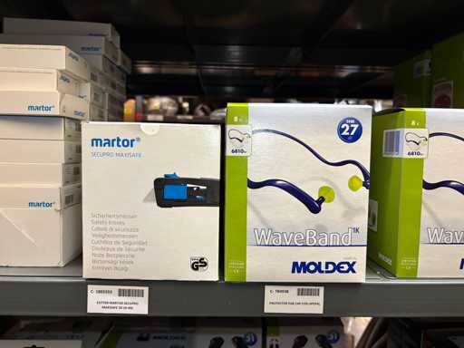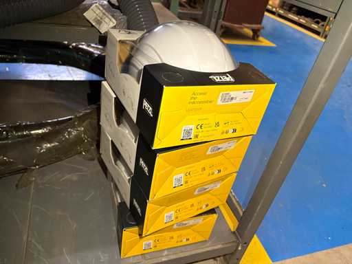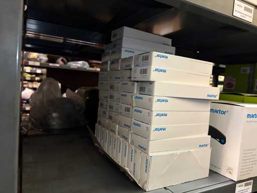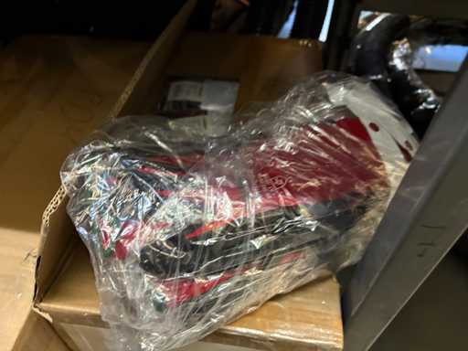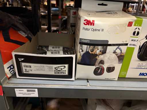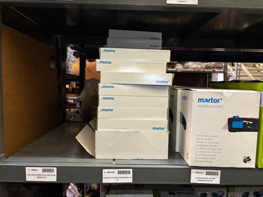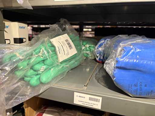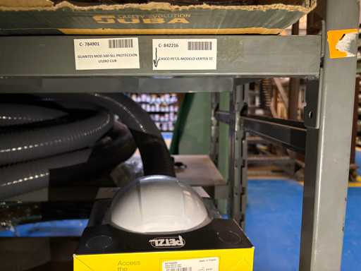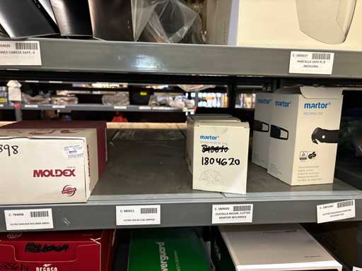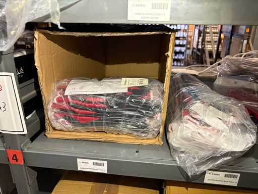 - Shelving not included: Only the spare parts and materials visible on the shelf marked in red in the first photograph are delivered. The metal structure is not part of the lot.