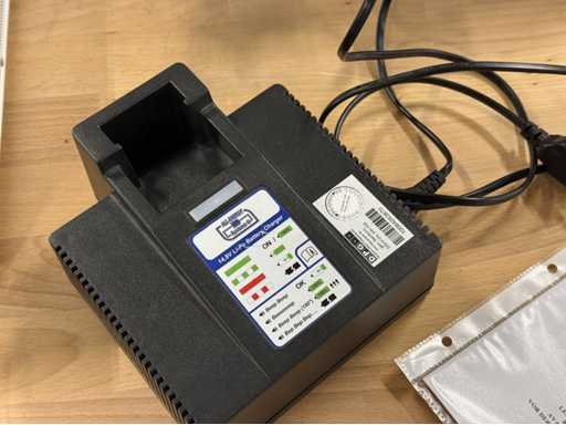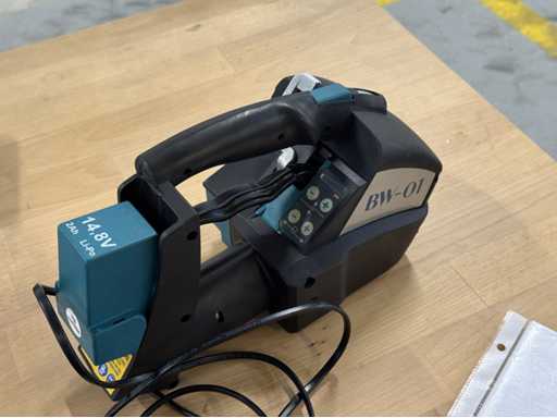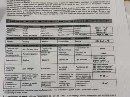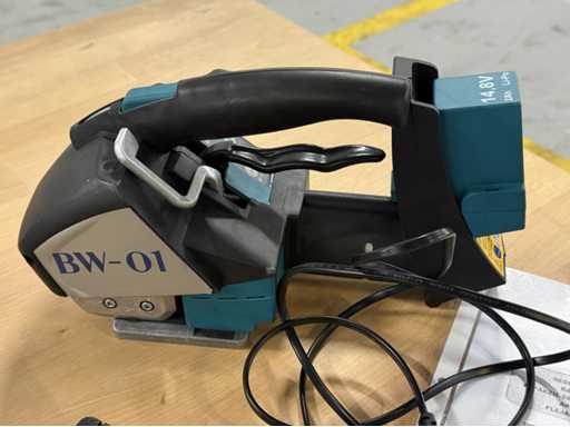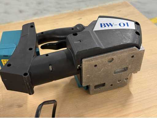 maximum clamping capacity: 2200 N; Band width: 13 - 16 mm; including charger and battery; for more details see photos;