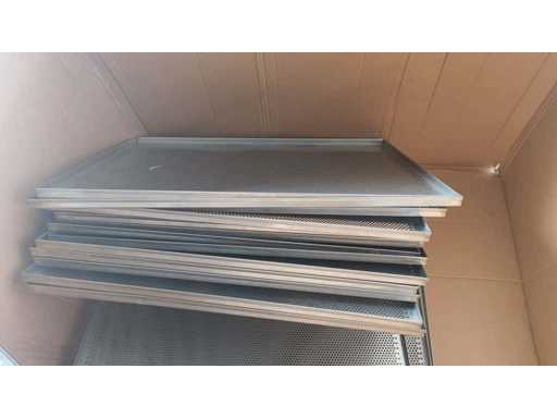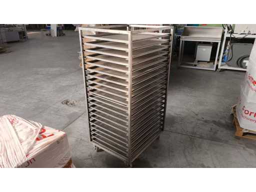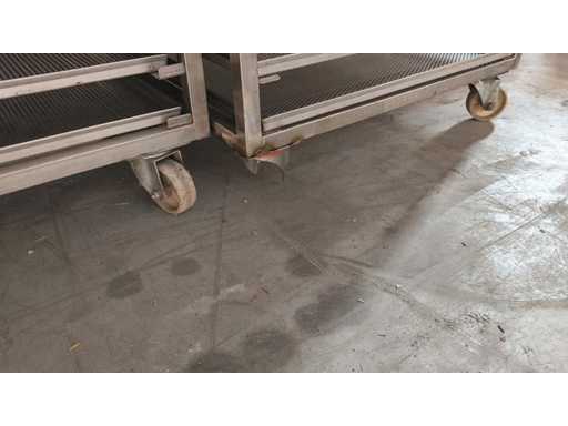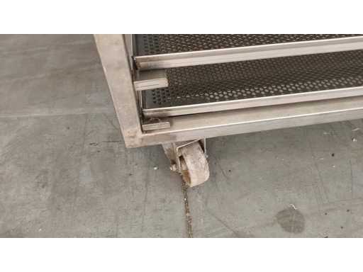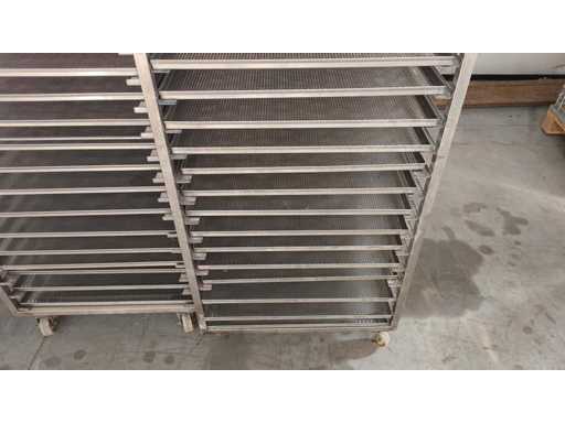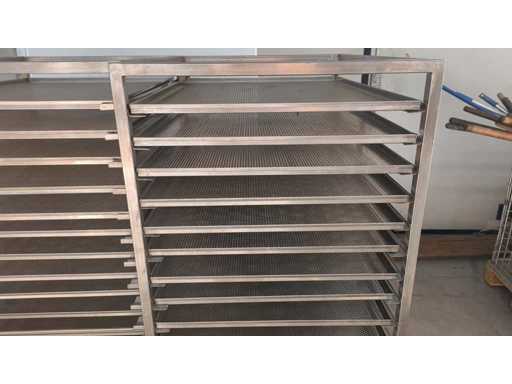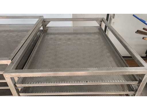 Stainless steel drying trolleys with 20 shelves equipped with trays + 12 loose steel trays.