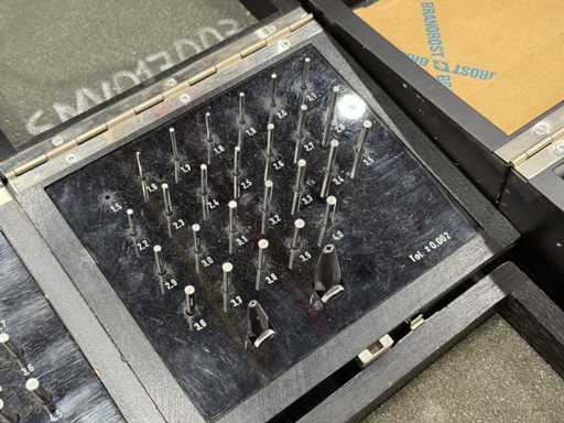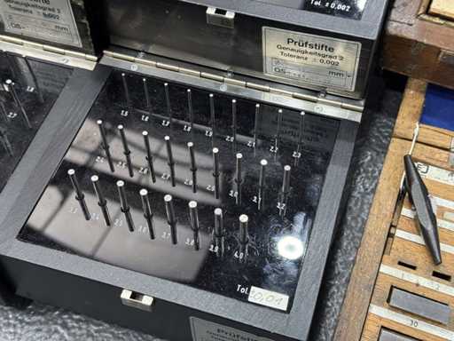 A total of 12 sets of different test pins and gauge blocks; see photos for more details on sizes;