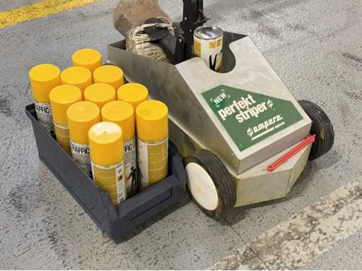 Floor marking device; Make: Perfect Striper; included assortment of spray cans; for more details see photos;