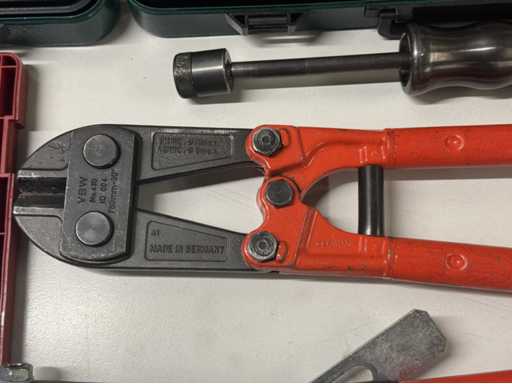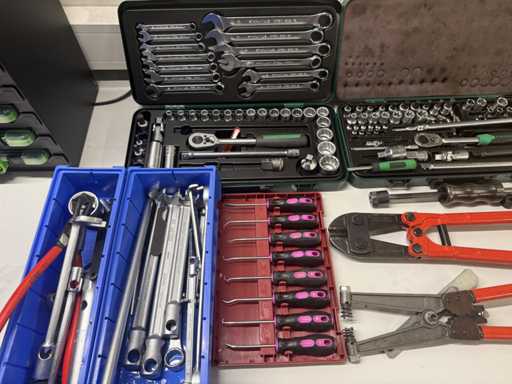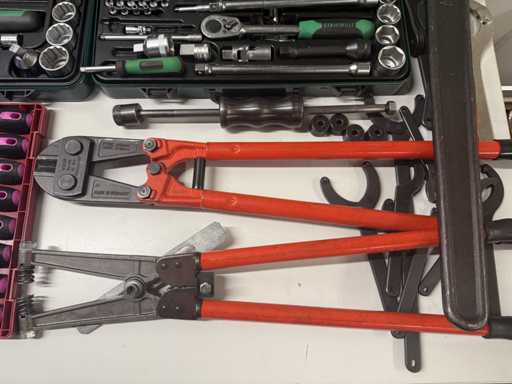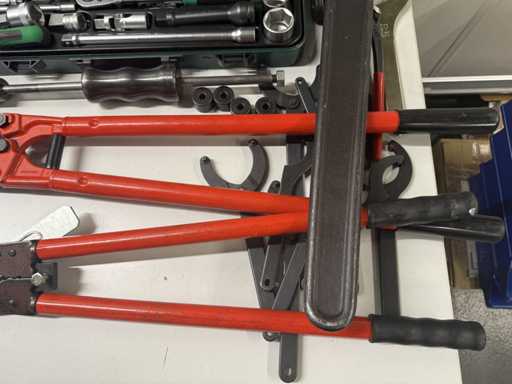 Socket wrenches, ring/open-end wrenches, bolt cutters, riveting pliers