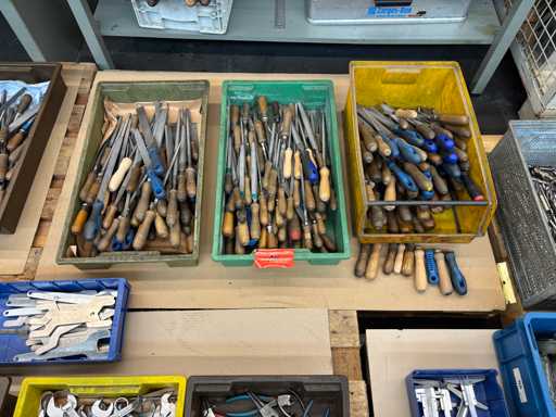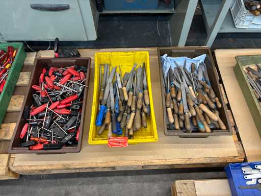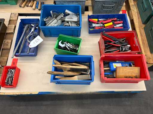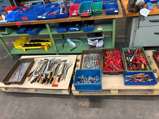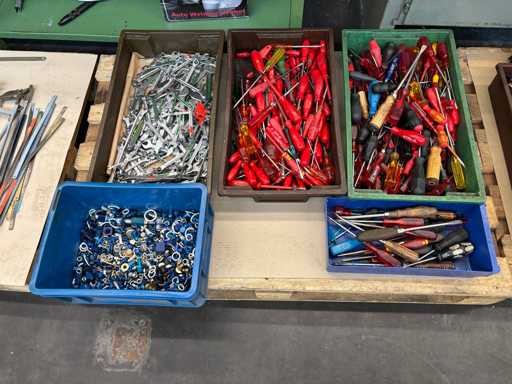Content consisting of: pliers, screwdrivers, micrometers, calipers, twist drills, milling cutters, files, open-end wrenches, Allen keys and saws.