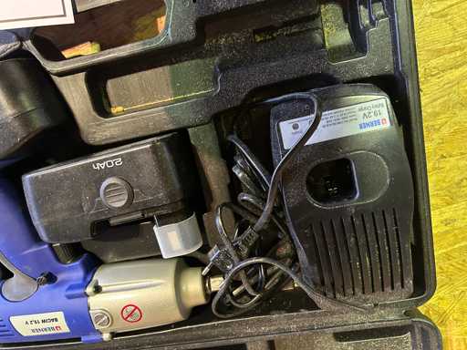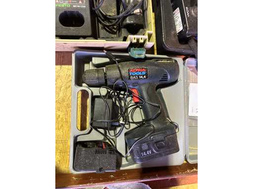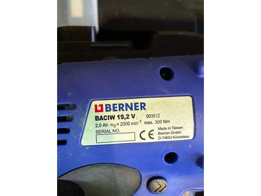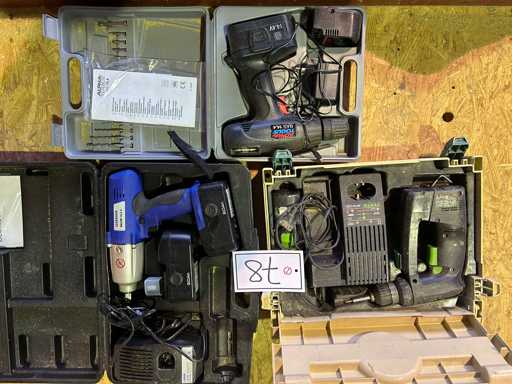 1 Pc. Festo Type CDD 9.6 ES with Battery and Charger in Case, 1 Pc. Alphatools Type BAS 14.4 with Battery and Charger in Case, 1 Pc. Cordless Impact Wrench Berner Type BACIW 19.2 V with 2 Batteries and Charger in Case.
