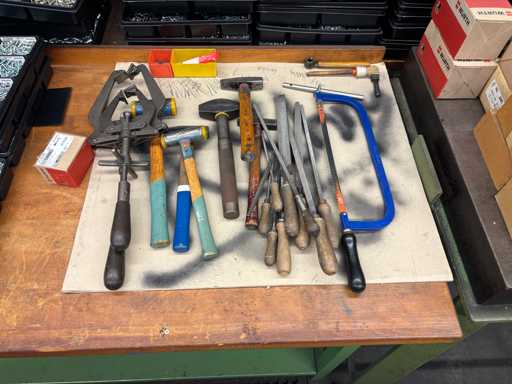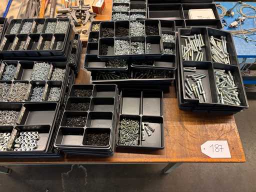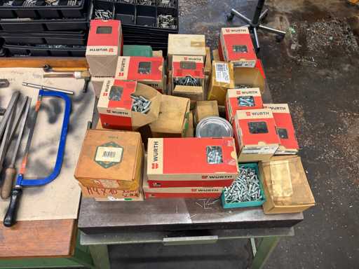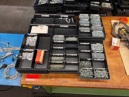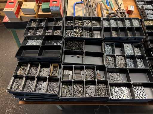 Content consisting of: various screws, washers, cylindrical pins, hammers and arrows.
