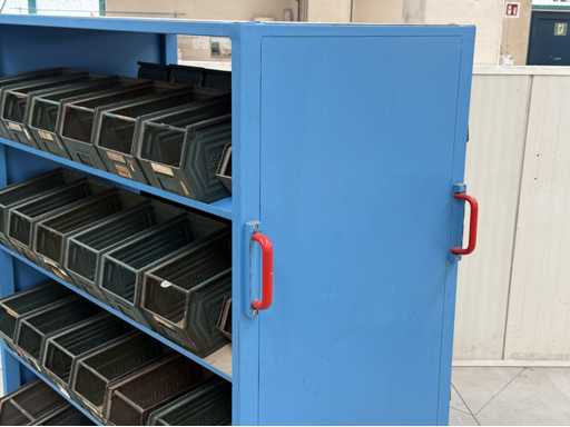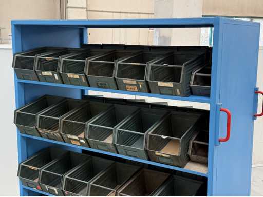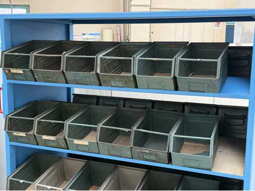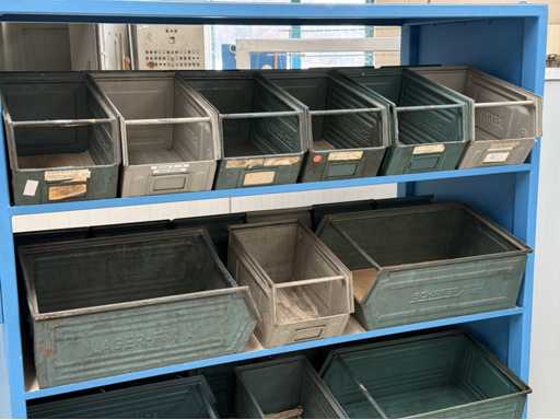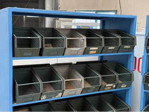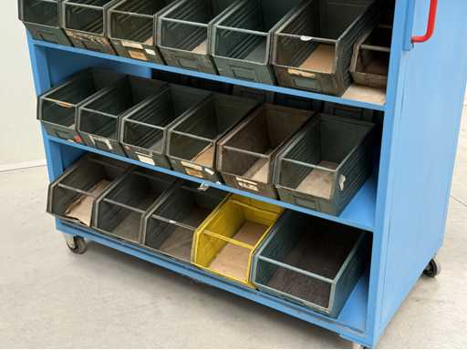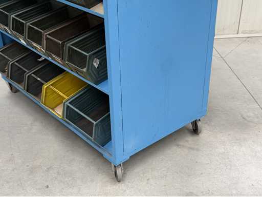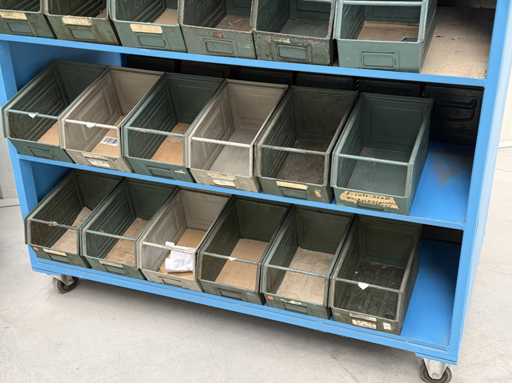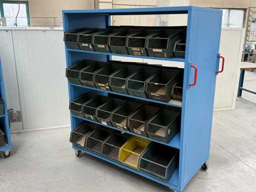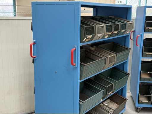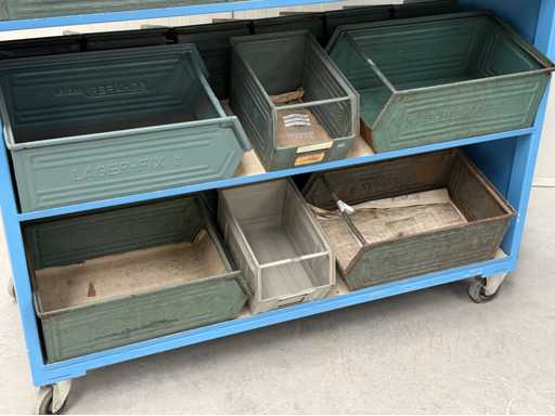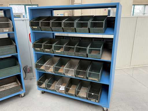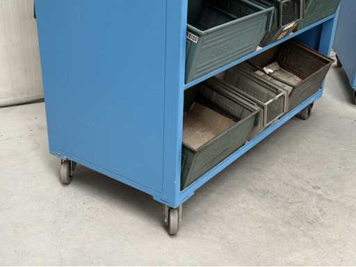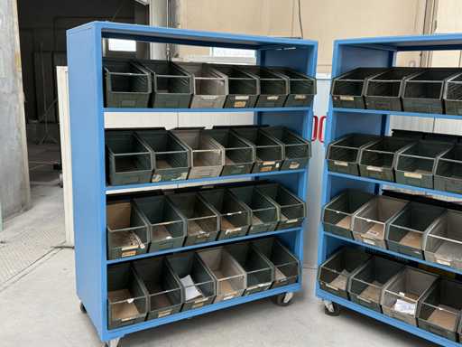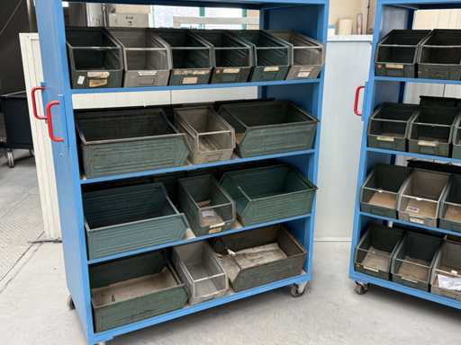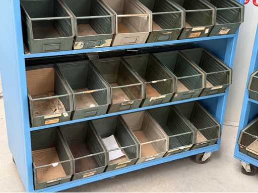 2 mobile material trolleys, dimensions each approx. 1450x450x1800, equipped with metal skipper boxes on both sides, see photos for more details