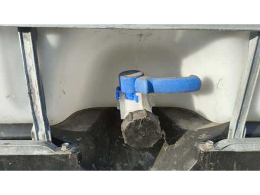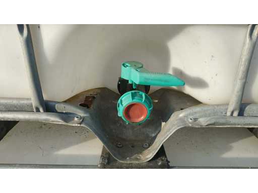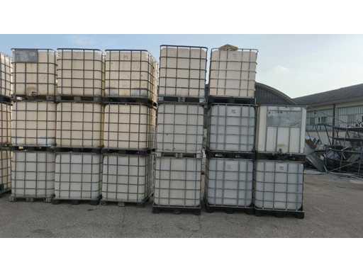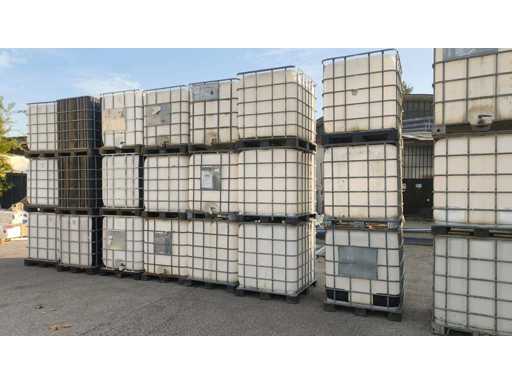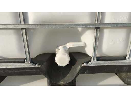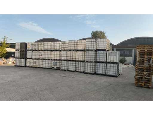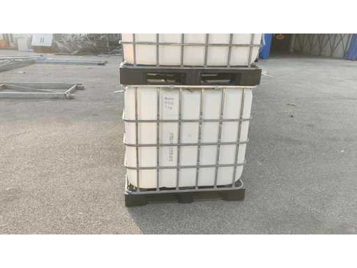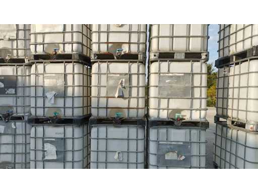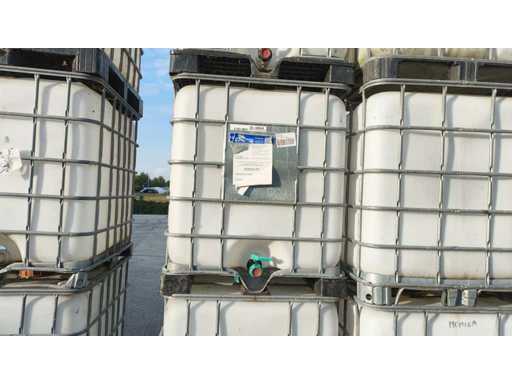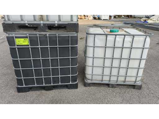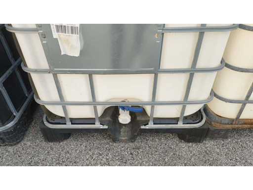 Nr 5 1000-liter tanks with cage placed on plastic pallets. Dimensions 1200x1000x1150mm approximately. With butterfly valve.