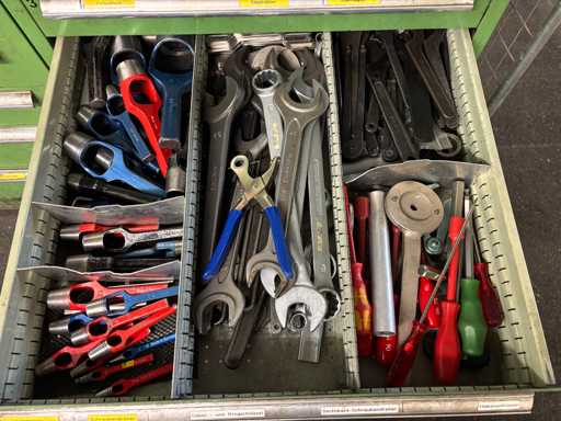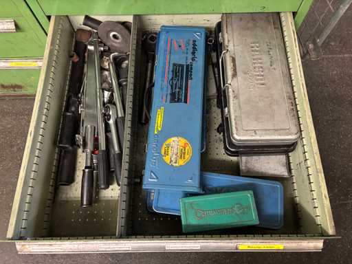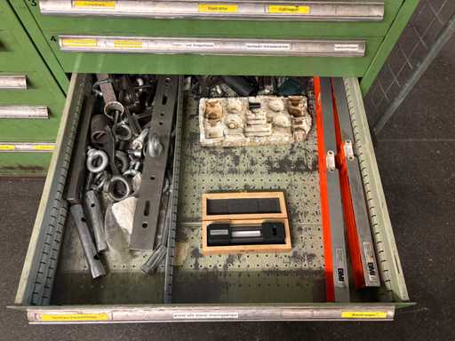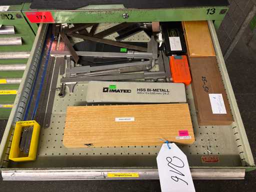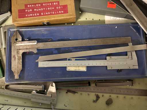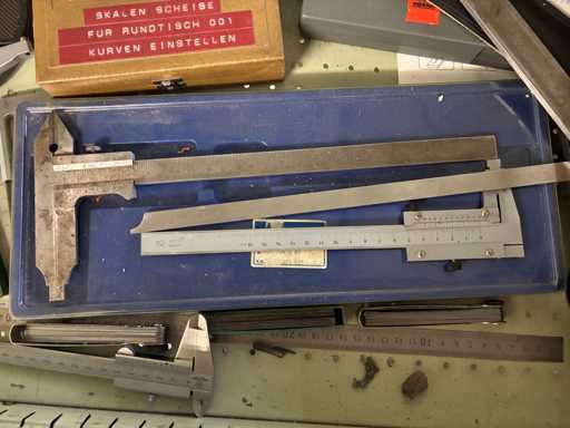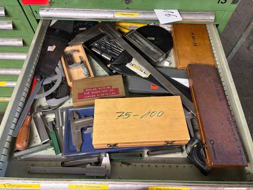 Content consisting of: various measuring equipment, including calipers, bow gauges, foil sheets of various dimensions, hand tools and other workshop supplies, as can be seen in the pictures.