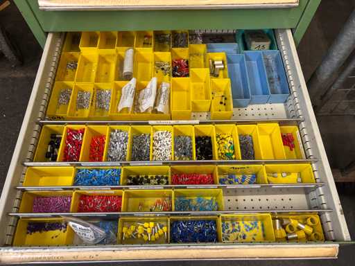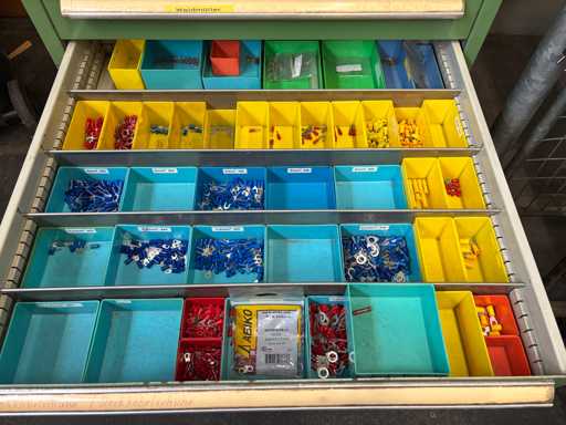 Content consisting of: terminals, designation plates, plug-in cable lugs, ring cable lugs, Phoenix terminal labels and other electrical accessories.