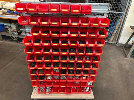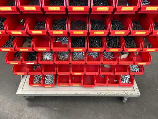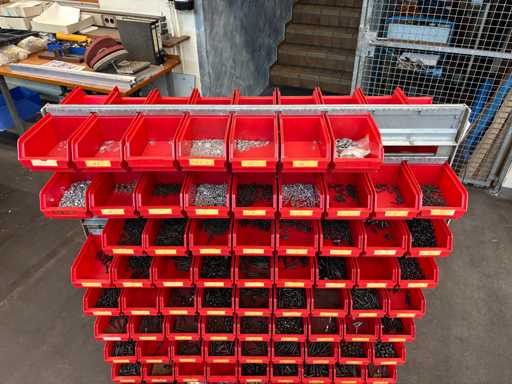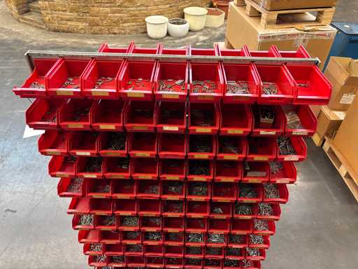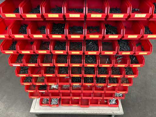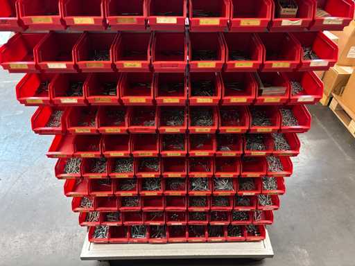 Content consisting of: various screws in different designs and sizes as well as cylindrical pins.