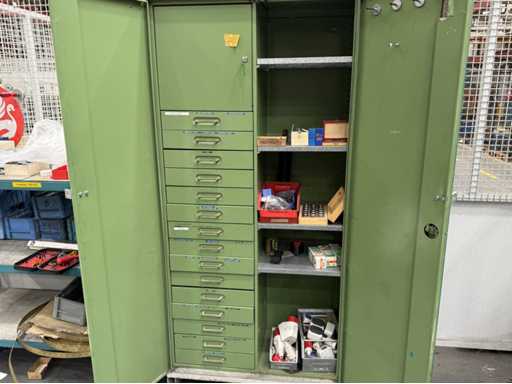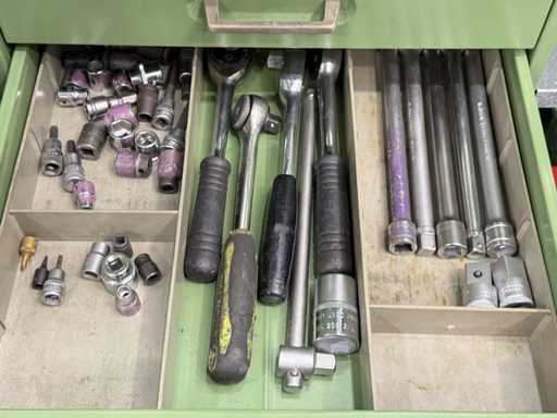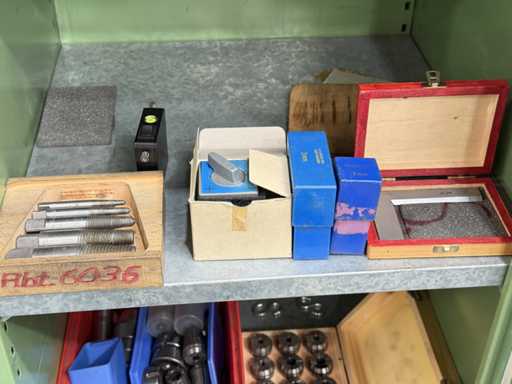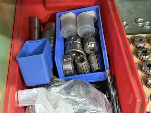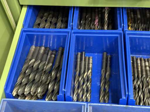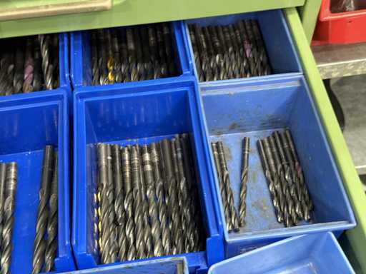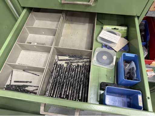 Contents: large assortment of twist drills, nut inserts, ratchet box, collets, hand tools, electrical materials, see photos for more details