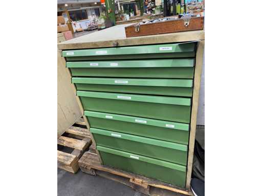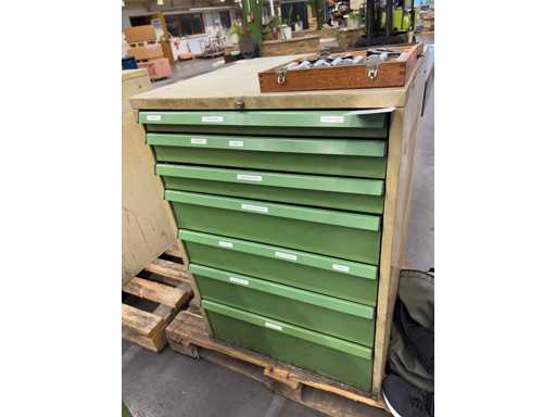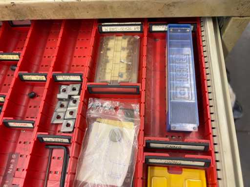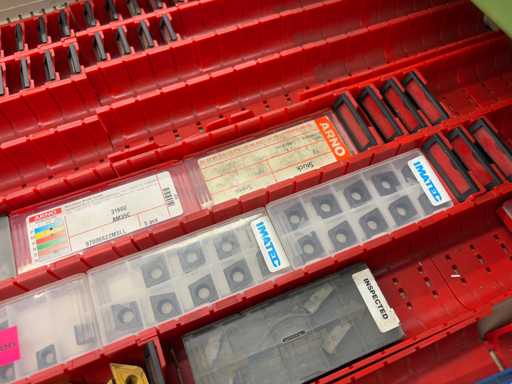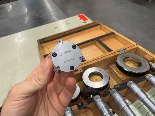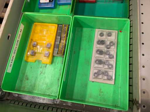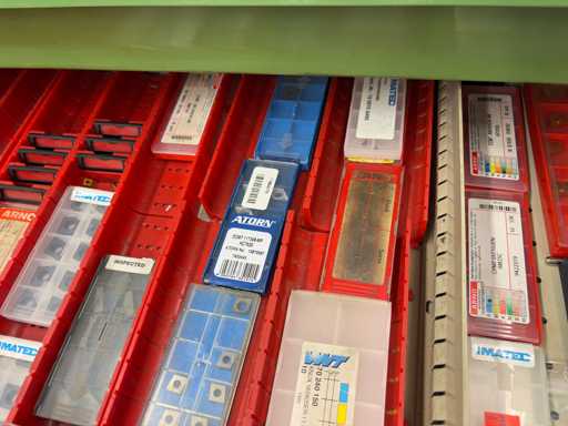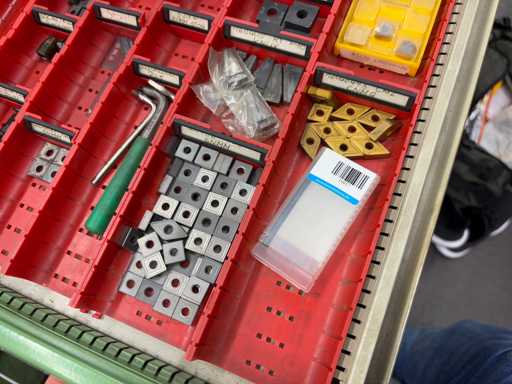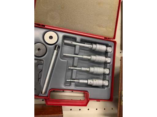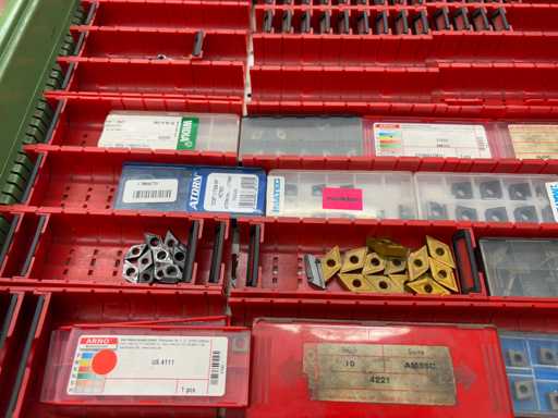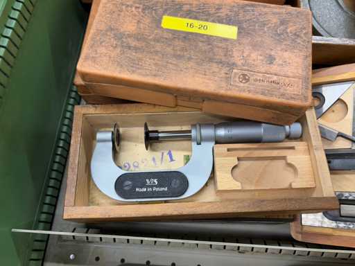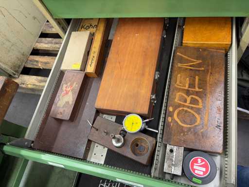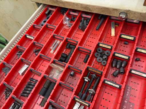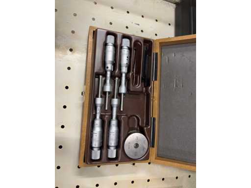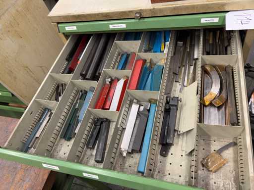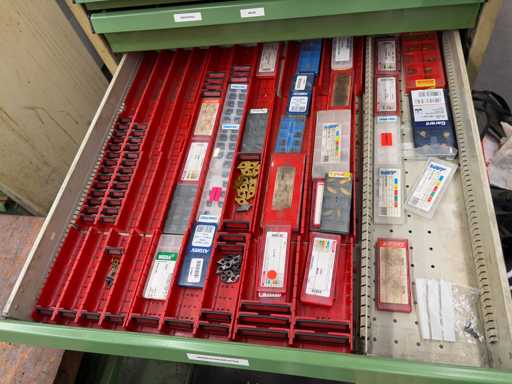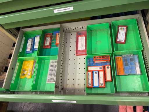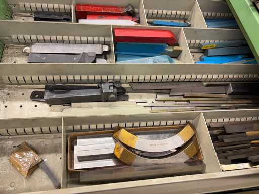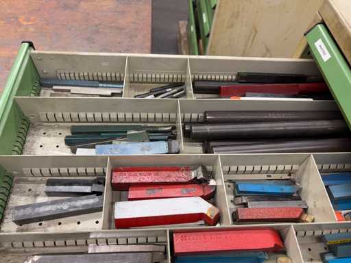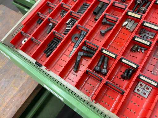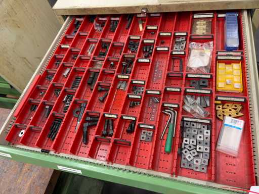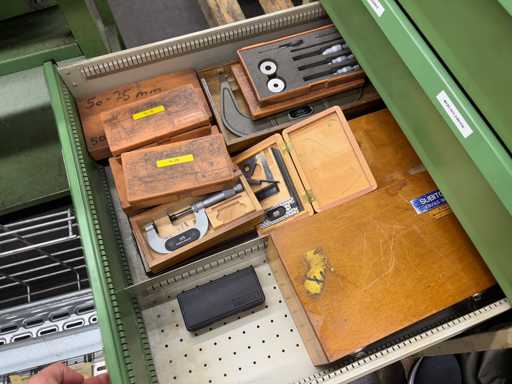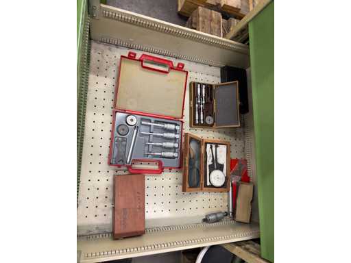 Content consisting of: screws, inserts, turning steels, various measuring equipment, such as dial gauges, micrometers and a set of 3-point internal micrometers (measuring range: from 20 - upwards mm).
