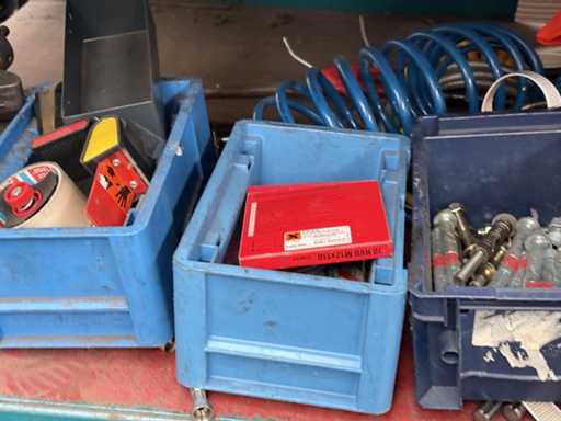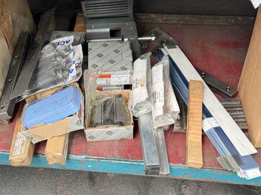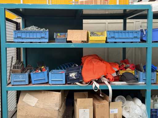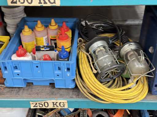 Contents: old electrical materials, lamps, tension belts, hoses, junction boxes, see photos for more details