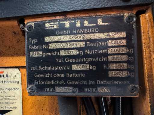 11/2010 1986 Still EFG2 2.000kg Freiheben Duplex Elektrostapler