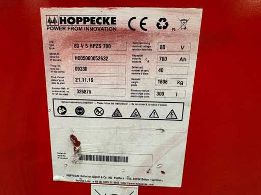 Battery 21/11/2016 80V 700Ah, very good performance measured