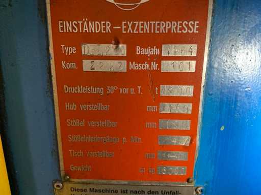 1964 BBT PRESSEN DPL200 Eccentric press