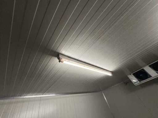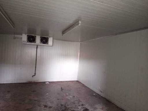 The cold room is used, technically obsolete (R12/R22 refrigerant), but structurally usable; Panels and doors complete, system last functional, surrender without functional guarantee.