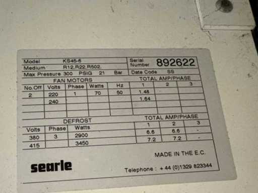 • Evaporator: Searle K545-6, 2 fans, serial number 892622
