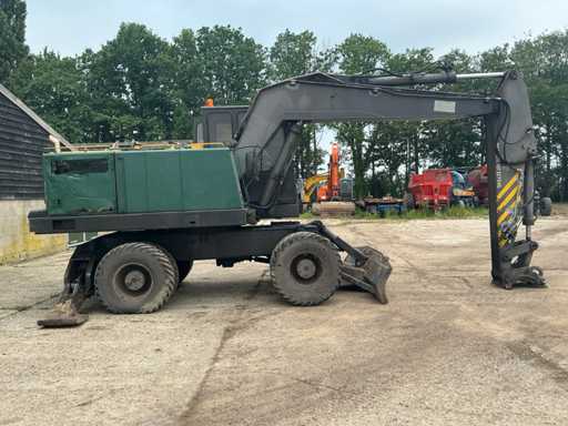 Equipped with 2 double-acting functions, return line, hydraulic cw30 quick coupler, hydraulic outriggers, sliding blade, 6 cylinder volvo diesel engine and joystick control