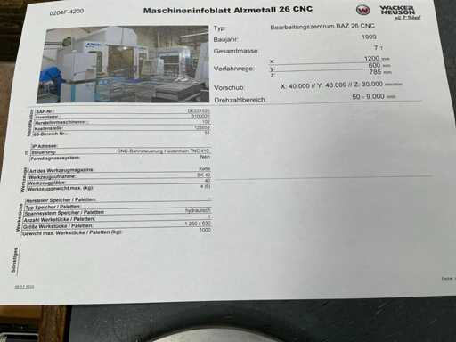 1999 ALZMETALL BAZ 26 CNC 102 CNC 5-axis machining center