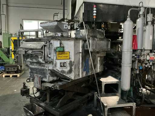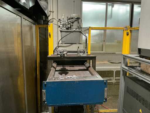 consisting of smelting furnace Striko West furnace W 90 SL DG, BUILT IN 1999, serial no.: 5853, die casting machine Bühler, Lw column spacing approx. 640 mm, spraying robot Fanuc M-710iC, incl. robot control and touch panel, parts removal robot Fanuc M-710iC, incl. robot control, 2 parts conveyor belt approx. 2,500mm lg, 600 mm wide, area requirement approx. 10,000 x 9,000 mm,