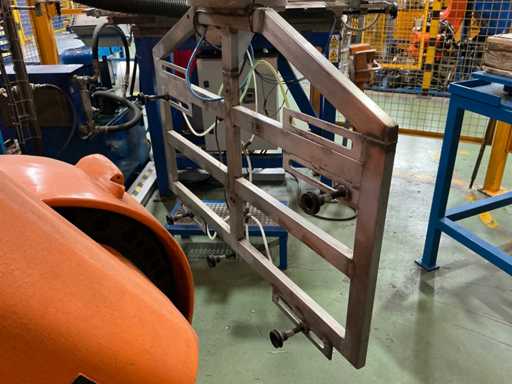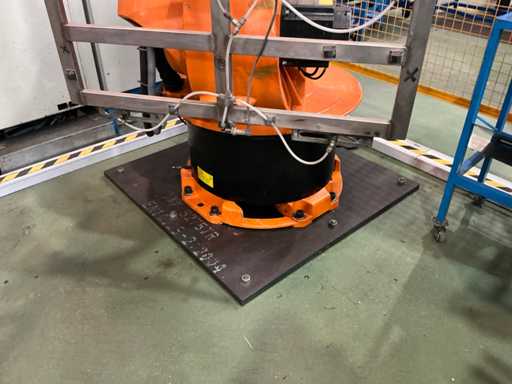 The handling/tooling fixture currently installed on the robot arm is not included in this lot