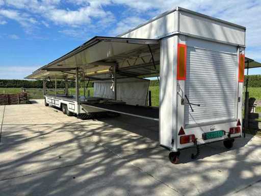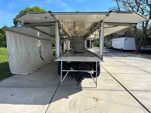 Market sales trolley, extendable up to 16000mm, electric lid control, fluorescent lighting, storage compartments, mover