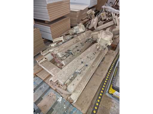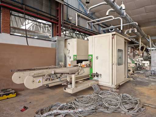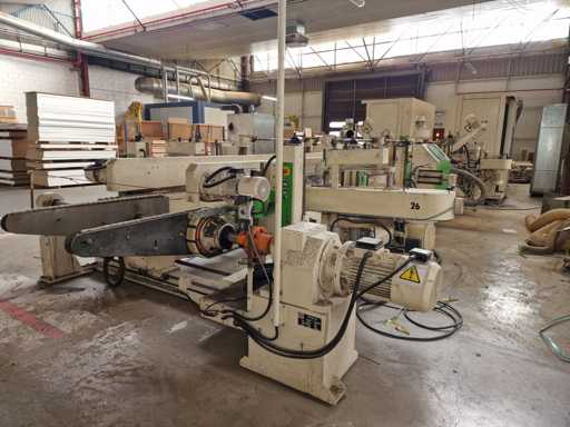 - Several dismantled groups previously belonging to this line are supplied: 2 belt sanding groups for upper bevel, 2 belt sanding groups for lower bevel, 2 sanding groups with sanding disc, 2 gilding groups