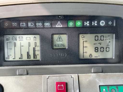 equipped with: front linkage, hydraulic suspension front axle, 4x double-locking rear valve, load-sensing, air system, air brake connection, suspended cab, hydraulic brake valve, suspension seat, radio, air conditioning, 540-540E-1000rpm PTO, K80 lower pull bar with steering, adjustable automatic top pull bar,