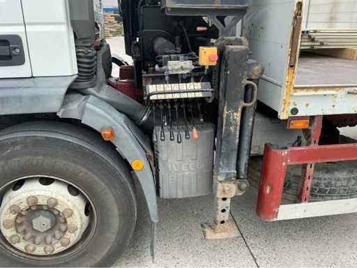 De vrachtwagen bevindt zich in gebruikte staat, start maar heeft een technisch probleem met de versnellingsbak.