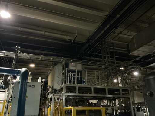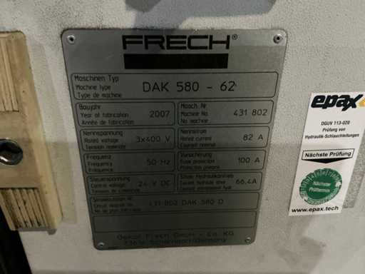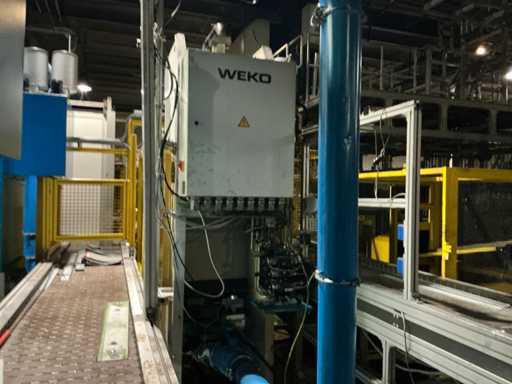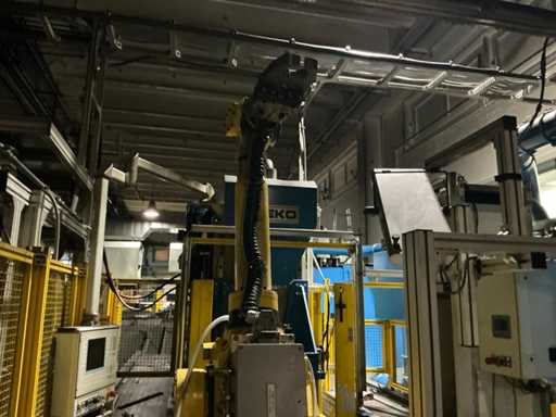 consisting of dosing furnace Westomat 65 S, 540 dm3, Fabr.Nr. 4568, Die casting machine Frech DAK 580-62, Spraying robot Fanuc m710ic, incl. robot control and touch panel, Parts removal robot Fanuc R2000ic, incl. robot control and touch panel, Suhner parts drilling device, Abb robot S4CPlus, BJ 2005 incl. control and touch panel, 1 Fanuc robot M710Ic, 1 Weko - punch WE-C-22, built in 2007, 2 pcs. transport link belt approx. 5,000 mm lg, approx. 400 wide, 2 pcs chip extraction Fabr. Ringler Type RE 201D5,5 Bj. 2017
