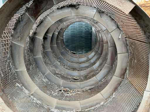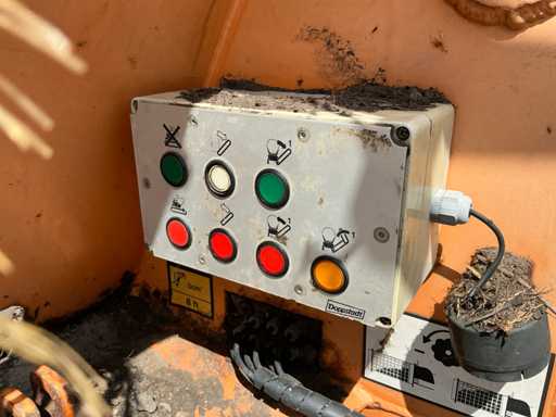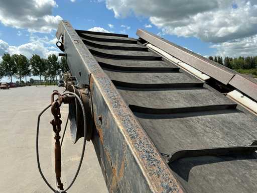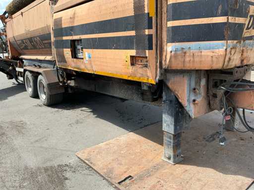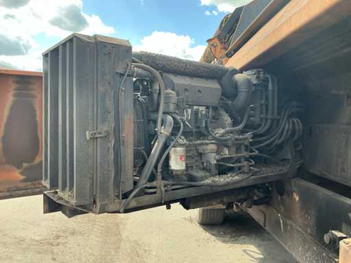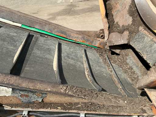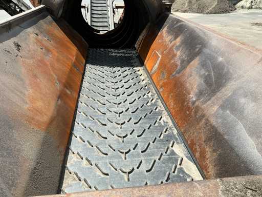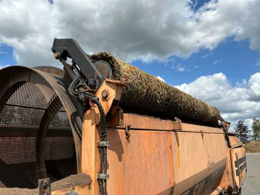 2 axles, tire size 435/50R19.5. Automatic lubrication system, Infeed bunker approximately 2000mm wide and 3500mm long. Infeed belt 900mm wide. Equipped with, among other things: 3x hydraulic outriggers, hydraulically foldable conveyor belts. Side conveyor belt approx. 4800mm long, 1000mm wide. Rear conveyor belt approx. 4600mm long, 850mm wide. Mercedes 4-cylinder engine. Drum Ø2000mm, 20x20mm included. This is a different drum than in the machine in the photo. See last image for included drum