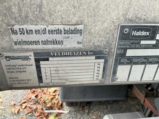 Including double air trailer "Veldhuizen" (OK-79-NP), loading platform size 7500x2250 mm, "Haacon" support legs, with crane "Maxilift" type 50.2M PSH, capacity 500 kg