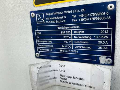 2012 MÖSSNER SSF 520 Vertical Band Saw Machine