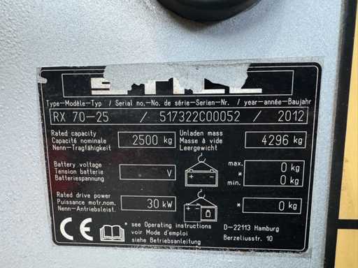 2012 UVV 07/2026 Still RX70-25 Triplex 628cm 2.500kg Diesel Forklift Forklift Service 11.700 hours
