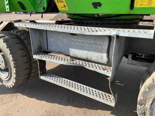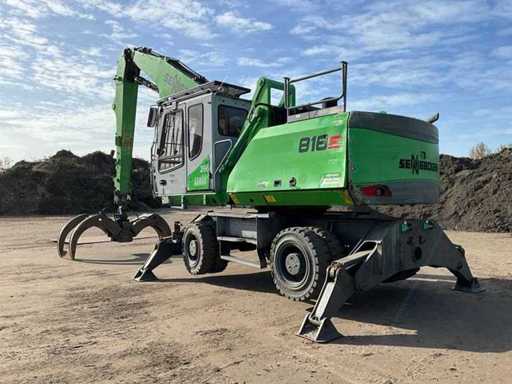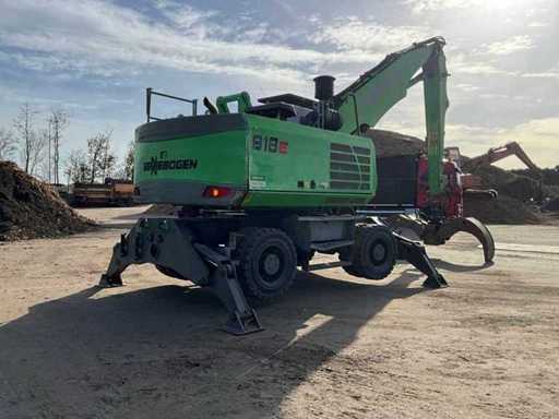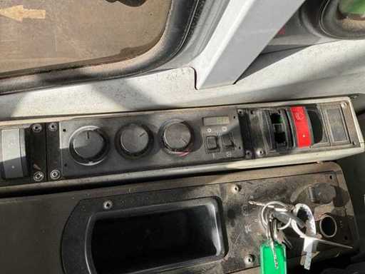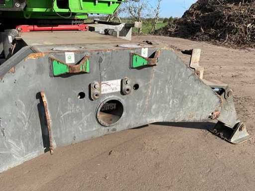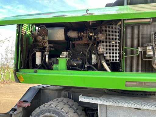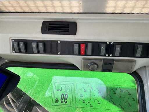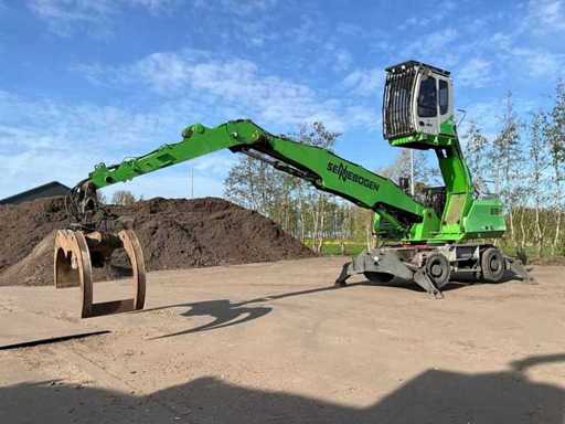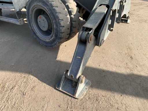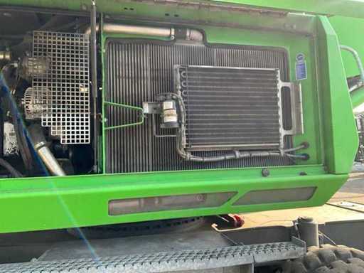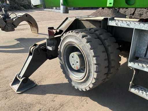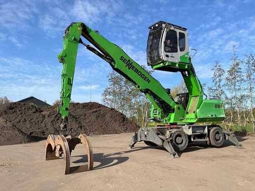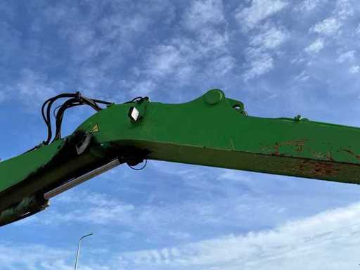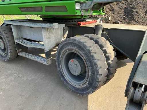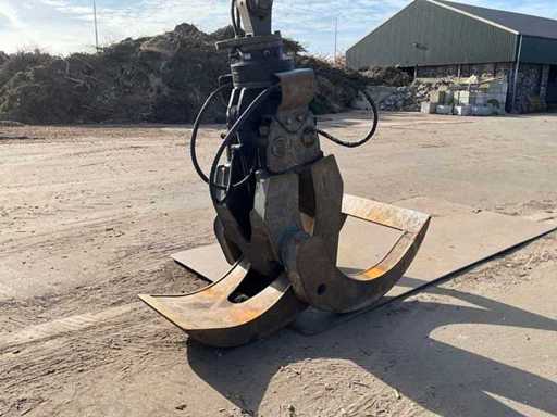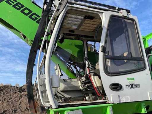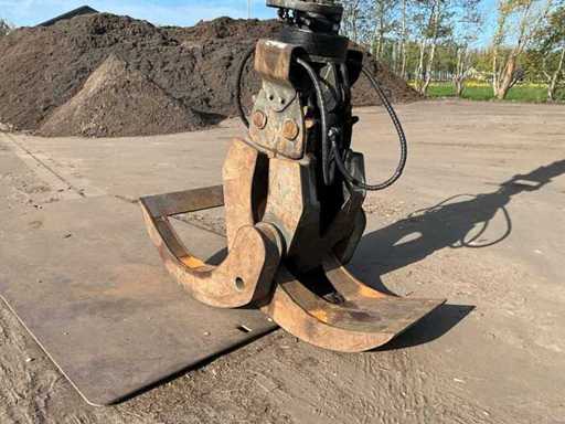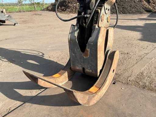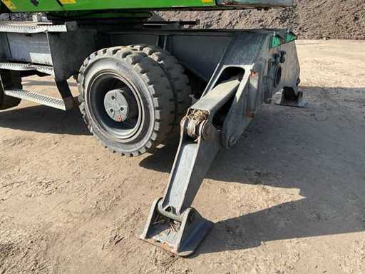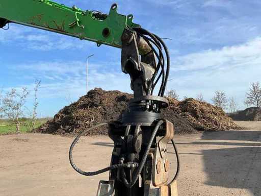 Equipped with outriggers, hydraulically liftable cabin, solid rubber tires, cabin protection, extra functions, work lighting, automatic grease lubrication, tree grabber, maximum spread grab 2860 mm, rotator,