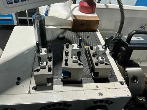 4 tool holders, digital position display DPA 21, user-friendly membrane keypad, splash-proof, closed and glare-free, glass scales, centre height 165 mm, centre width 830 mm, circulation diameter over machine bed 330 mm, rotation diameter over face slide 208 mm, turning length in the bed bridge 430 mm