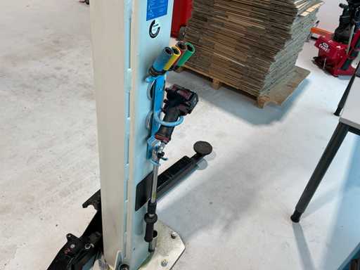 Ground screwed, incl. pneumatic gun, tire inflator, magnetic holder with pneumatic screwdriver and torque wrench, 4 sockets, support arms approx. 650-1340mm