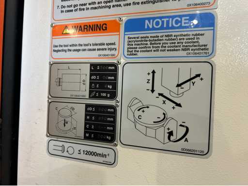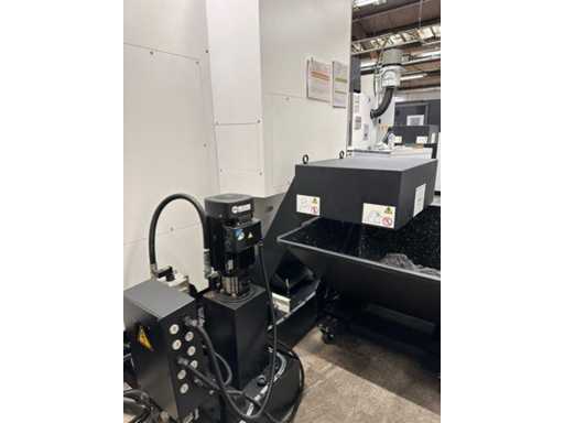 LOADING COST: €500,00 NO TOOLING!! NO VICE!! Equipped with: Mist filter Through spindle coolant A-axis: -120° / +30° C-axis: 360° Rapid feedrate XYZ: 30m/minut Height under spindle: 50 ~ 560mm Spindle Motor Power: 11kW Spindle Speed: 12000rpm Maximum Tool Diameter: 90mm Maximum Tool Diameter with Empty Adjacent Pockets: 130mm Maximum Tool Length: 300mm Tool Change Capacity 18 Station Tool Change Time (Chip to Chip): 6.2 seconds DIMENSIONS APPOINTED IN THE SPECIFICATIONS IS JUST THE MACHINE! MAKE SURE THERE IS ENOUGH LOADING SPACE FOR ALL THE ACCESSORIES!