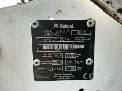 Equipped with: Bobcat S530 Kubota diesel engine. (year of construction 2018) is a compact skid steer loader with a diesel engine of 35.9 kW (±49 hp), rated operating capacity 840 kg, operating weight approx. 2,815 kg, rated speed 2,800 rpm, wheel version, standard quick coupler, cab with ROPS/FOPS and is suitable for earthmoving, loading and internal transport.