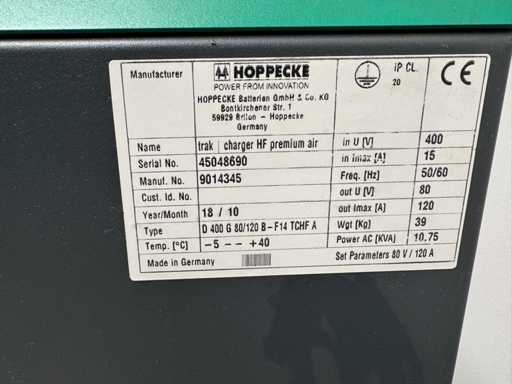 2018 Hoppecke HF Premium Air 80V 120A High Frequency Forklift Forklift Charger