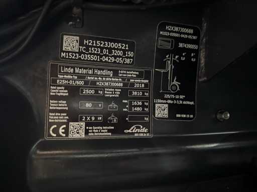 2018 Service + UVV 09/2026 Linde E25 EVO Klima 3rd + 4th Clamp 170cm Electric Forklift