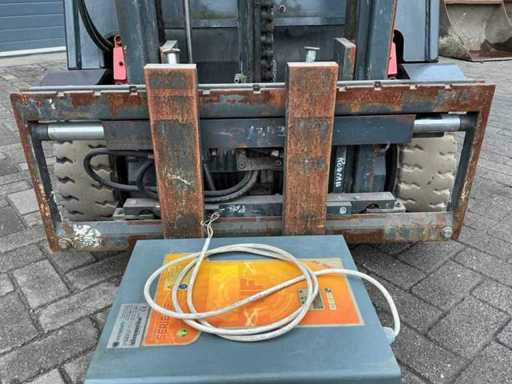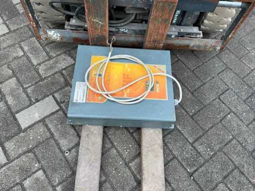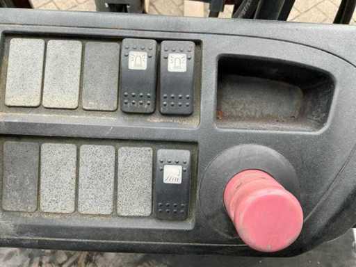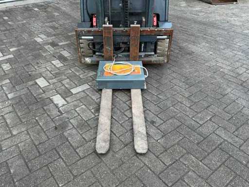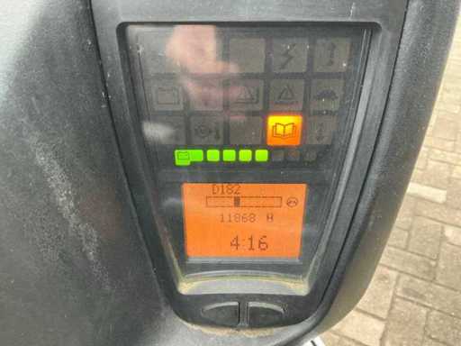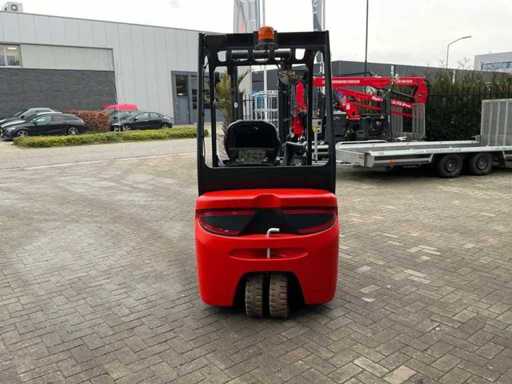 Equipped with: including charger, Forks 1200mm, spoon board 1050mm, duplex mast, side shift, led work light, towing eye with pin 25mm, 48V battery pack, max lifting height 3300mm, max lifting capacity 1600kg,