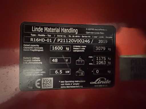 2019 Service + UVV 09/2026 Linde R16HD Electric Forklift Reach Truck Triplex 900cm